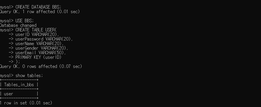 CREATE DATABASE BBS;