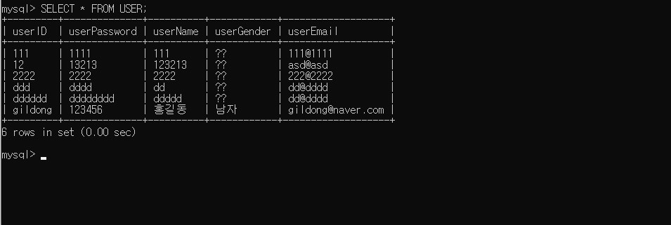 userGender 값이 왜 다 ?? 로 나올까